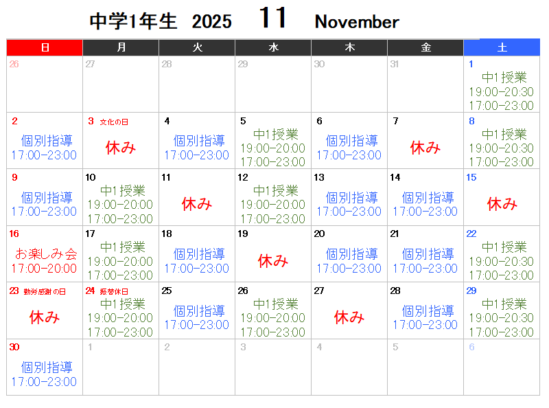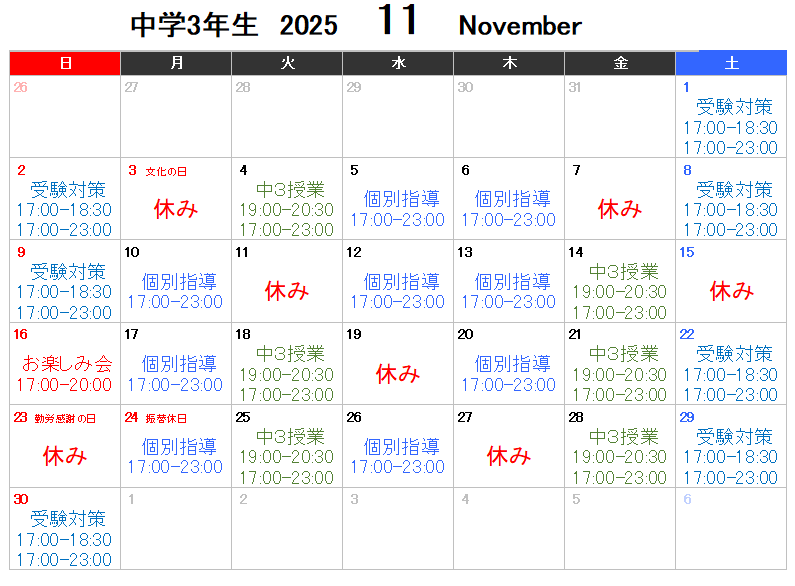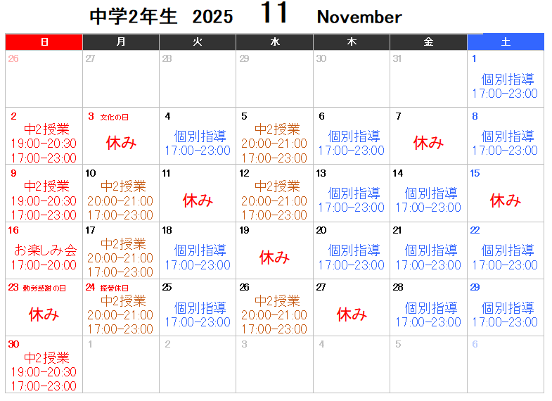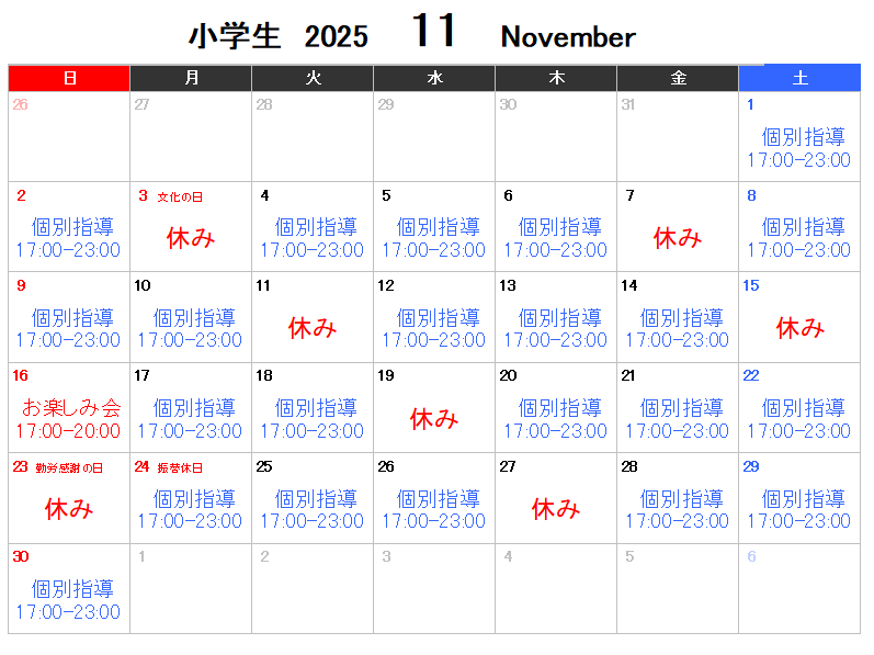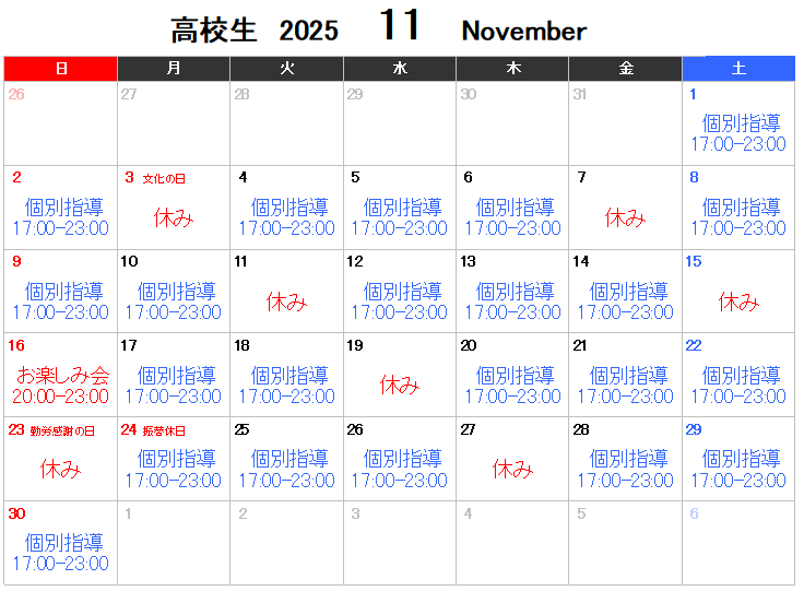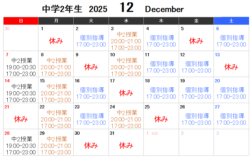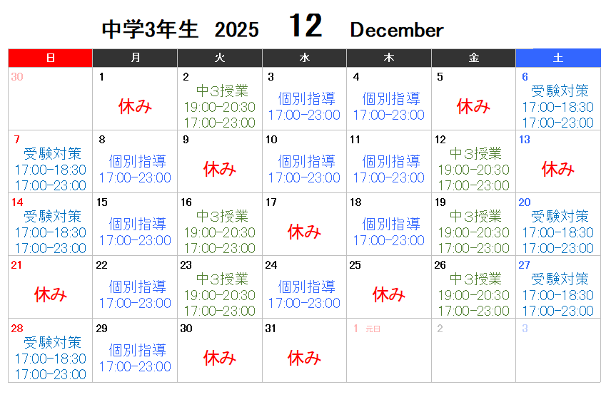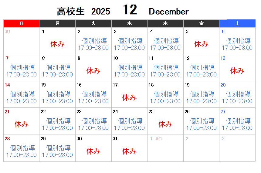 A.当塾では、講習などは実施していません。夏休みや冬休みも通年どおりの営業です。